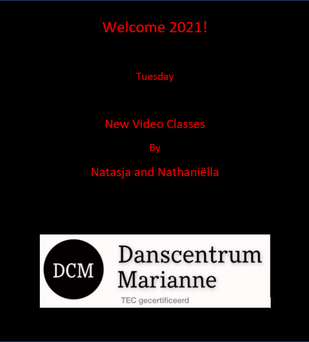 Wij wensen iedereen een gelukkig en gezond 2021 toe! Aankomende dinsdag starten we weer met de dansfilms van Natasja en Nathaniëlla. We hopen na 19 januari te kunnen beginnen met het nieuwe dansseizoen. Hopelijk tot snel allemaal!